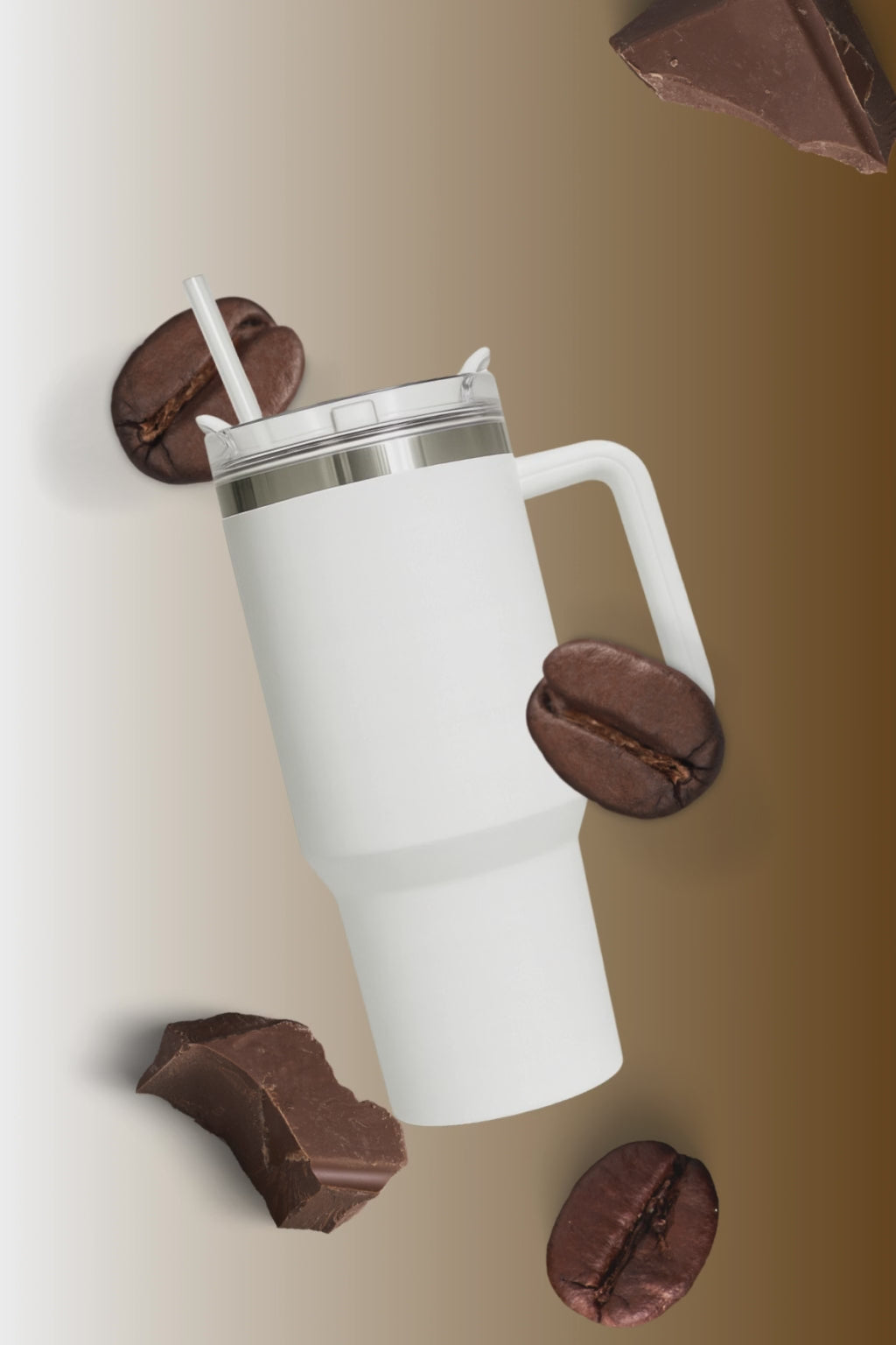 40 Oz tumbler, ergonomic handle, 2-in-1 lid, and reusable straw included.